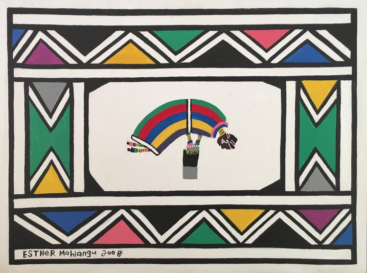 Artist: Mahlangu, Esther Title: Ndebele Woman, 2008 Medium: Oil on canvas Code: Size: 60 cm x 80 cm