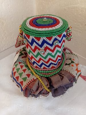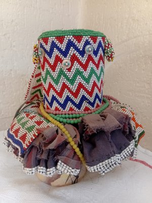 Medium: Mixed media with glass beads, thread, buttons, bells and textile