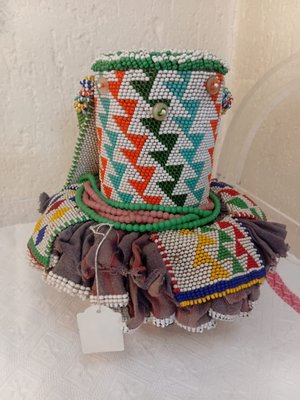 Medium: Mixed media with glass beads, thread, buttons, bells and textile