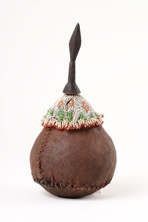 “Spearhead” by Yingwani is a 29 × 17 cm sculpture crafted in 1976 from wood, gourd, and beadwork. With its strong, pointed form, it reflects strength, direction, and ancestral authority. As a vintage piece from the Nhunguvani series, it offers both historical and artistic value. Curated by Natalie and now priced to go, it’s a rare chance to own an authentic piece of South African heritage at an unbeatable price.